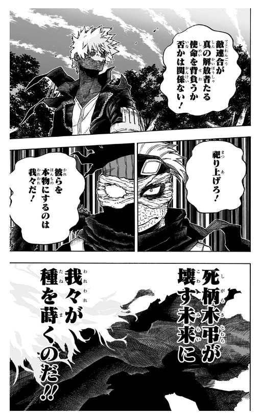 僕のヒーローアカデミア 25 さっきまでの割れるような頭の痛さは消えた…。ああ…思い出した…。ガキの頃に初めて感じた快感。俺にとって家族との記憶は悲劇なんかじゃない。こんなヒーロー溢れる社会も、未来も要らない…全部ぶっ壊れろよ!!