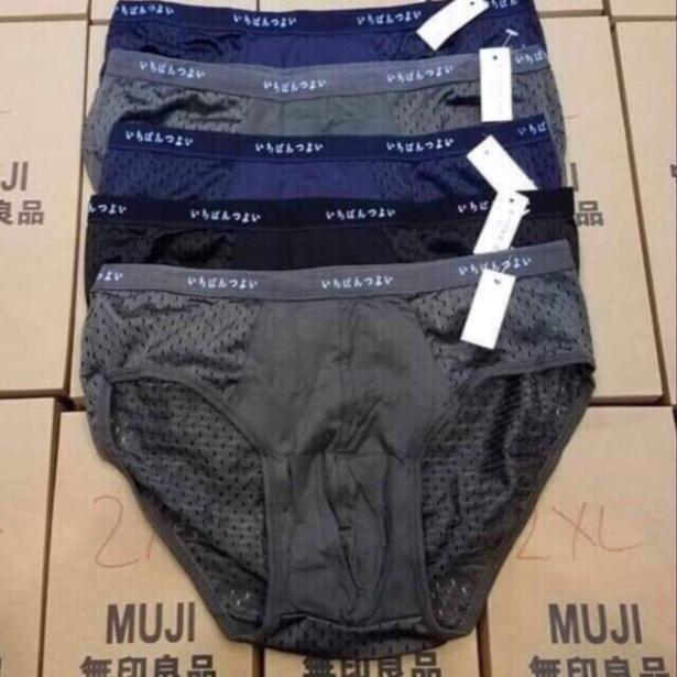 Hộp 5 quần lót nam tam giác Muji nhật lưới, Quần Sịp/quần xì Nam thông hơi thoáng khí kháng khuẩn Xuất Nhật Size: XL (47-58kg), XXL (58-68kg), XXXL (68-80kg) Chất liệu coton lụa cao cấp