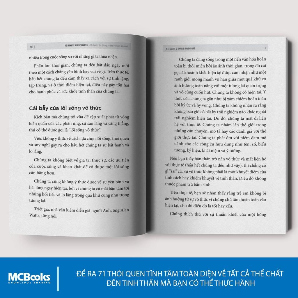 - Giảm tần suất và cường độ của những cảm xúc tiêu cực hoặc gây hại. Hãy mua ngay cuốn sách 10 phút tĩnh tâm để giảm đi gánh lo cuộc sống và biết trân trọng thời gian của chính mình. Khi mua sách tại MCBooks: