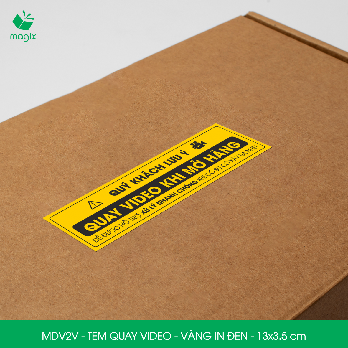 ✨100 Tem chú ý quay video trước khi mở hàng, decal dán hộp - 13x3,5 cm - Vàng in đen - MDV2V