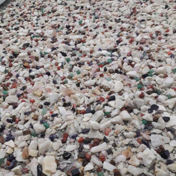 Đá Thạch Anh vụn trắng đánh bóng trải sự hình thành và phát triển hàng trăm triệu năm, dưới sự biến động của khí hậu các tinh thể thạch anh đã nhận được