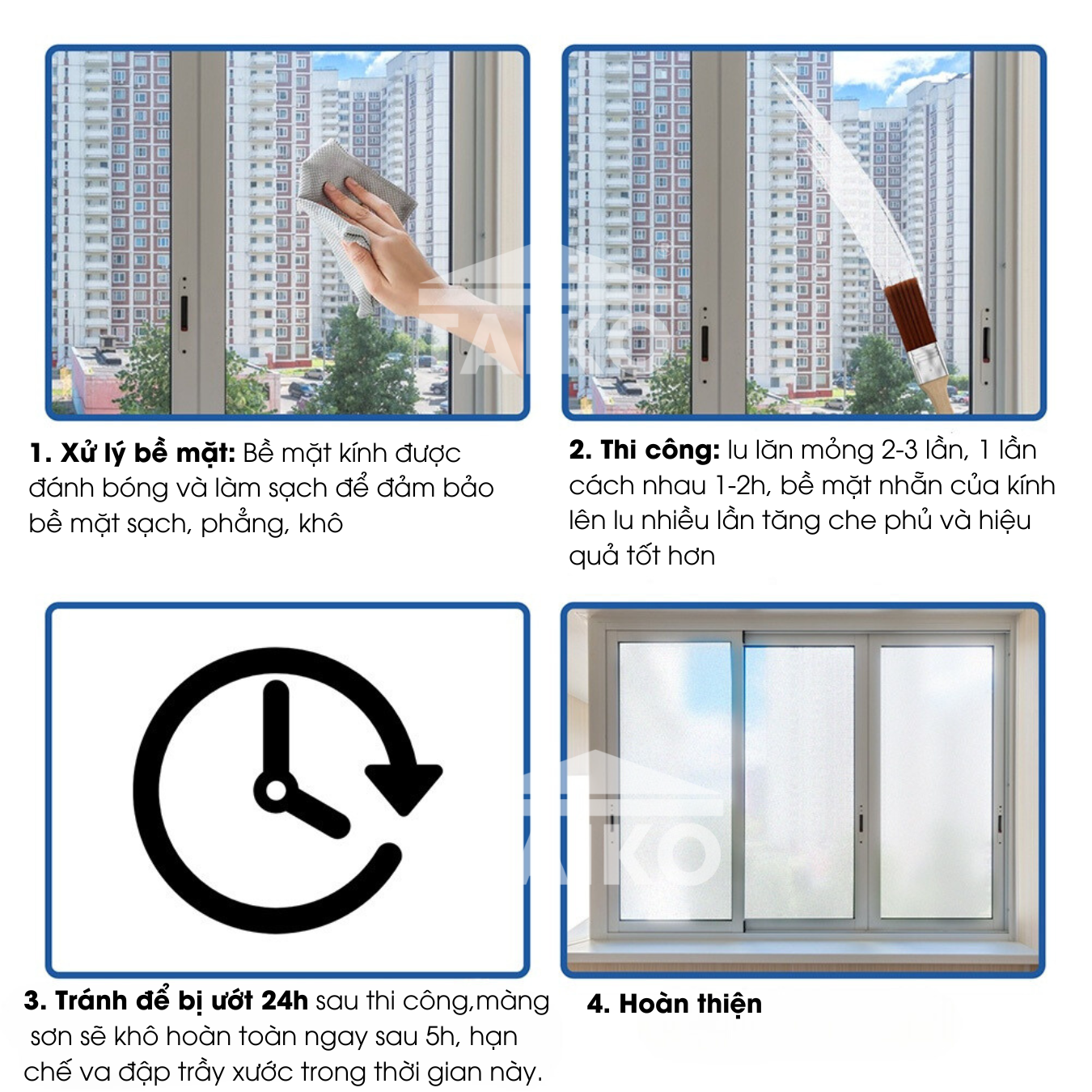 - Khi phủ sản phẩm lên bề mặt kính sẽ không nhìn rõ các vật phía sau tạo cảm giác riêng tư, che chắn ánh sáng mà vẫn giữ sự thẩm mỹ cho bề mặt kính.