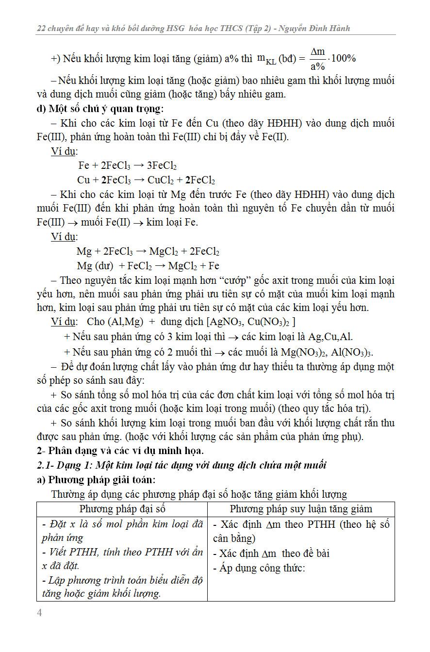 - Tập 2 (tổng hợp vô cơ, hữu cơ):gồm 12 chuyên đề tổng hợp và giới thiệu lời giải chi tiết một số đề thi hay trong các kỳ thi chọn học sinh giỏi và tuyển sinh vào lớp 10 chuyên hóa của các tỉnh, thành phố. Trong cuốn sách22 Chuyên Đề Hay và Khó Bồi Dưỡng Học Sinh Giỏi Hóa Học THCS Tập 1gồm có những nội dung: