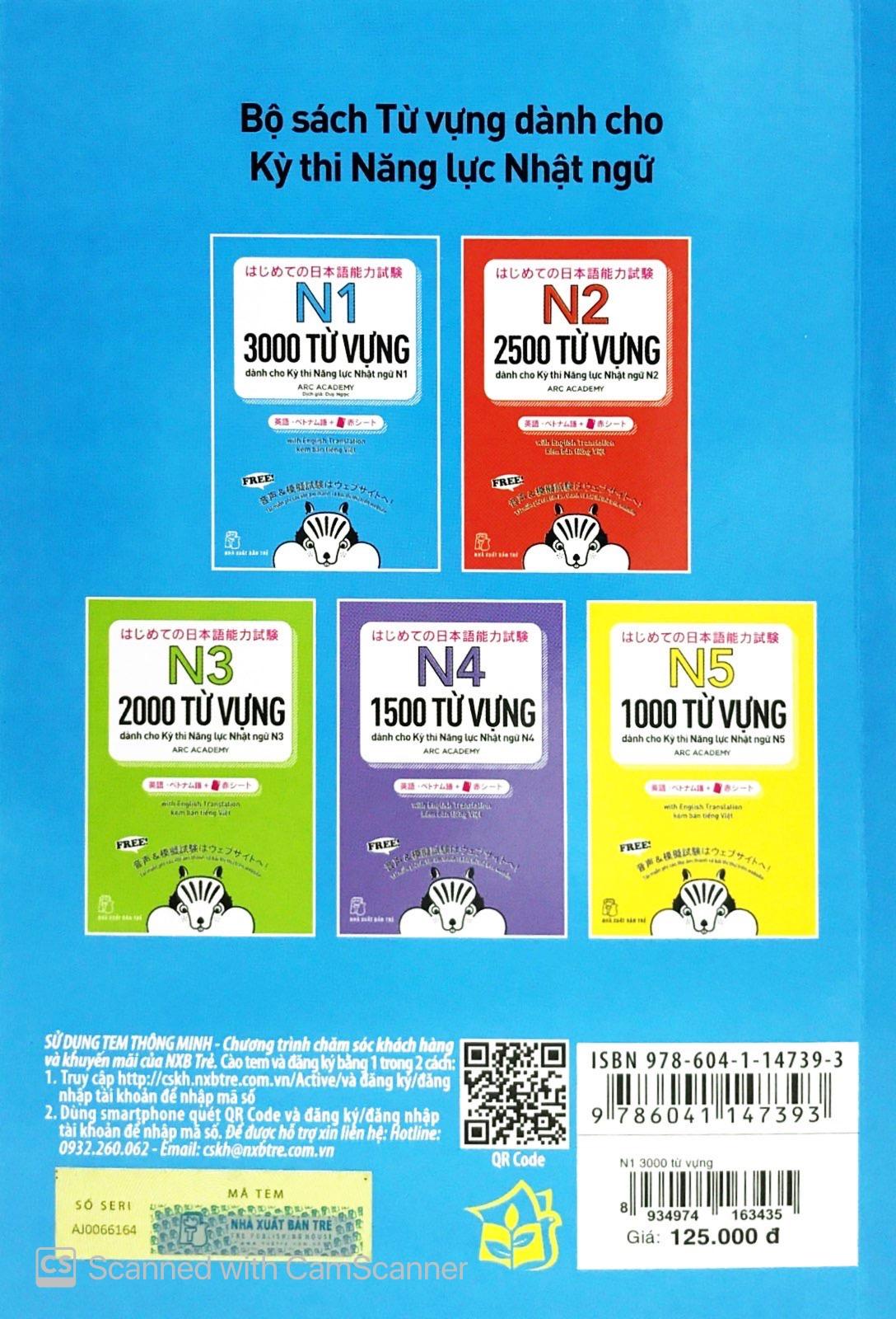 Mua tại TiktokBộ sách học từ vựng cấp độ N5 ~ N1 dành cho Kỳ thi Năng lực Nhật ngữ. Bộ sách gồm 5 cuốn: N1, N2, N3, N4, N5, tập hợp các từ vựng xuất hiện thường xuyên trong các kỳ thi Năng lực Nhật ngữ. Các từ vựng này được chia theo từng chủ đề, đi kèm các câu ví dụ. Đặc biệt bộ sách có kèm theo bản dịch Anh - Trung - Việt, rất tiện cho các bạn tự học ở nhà.