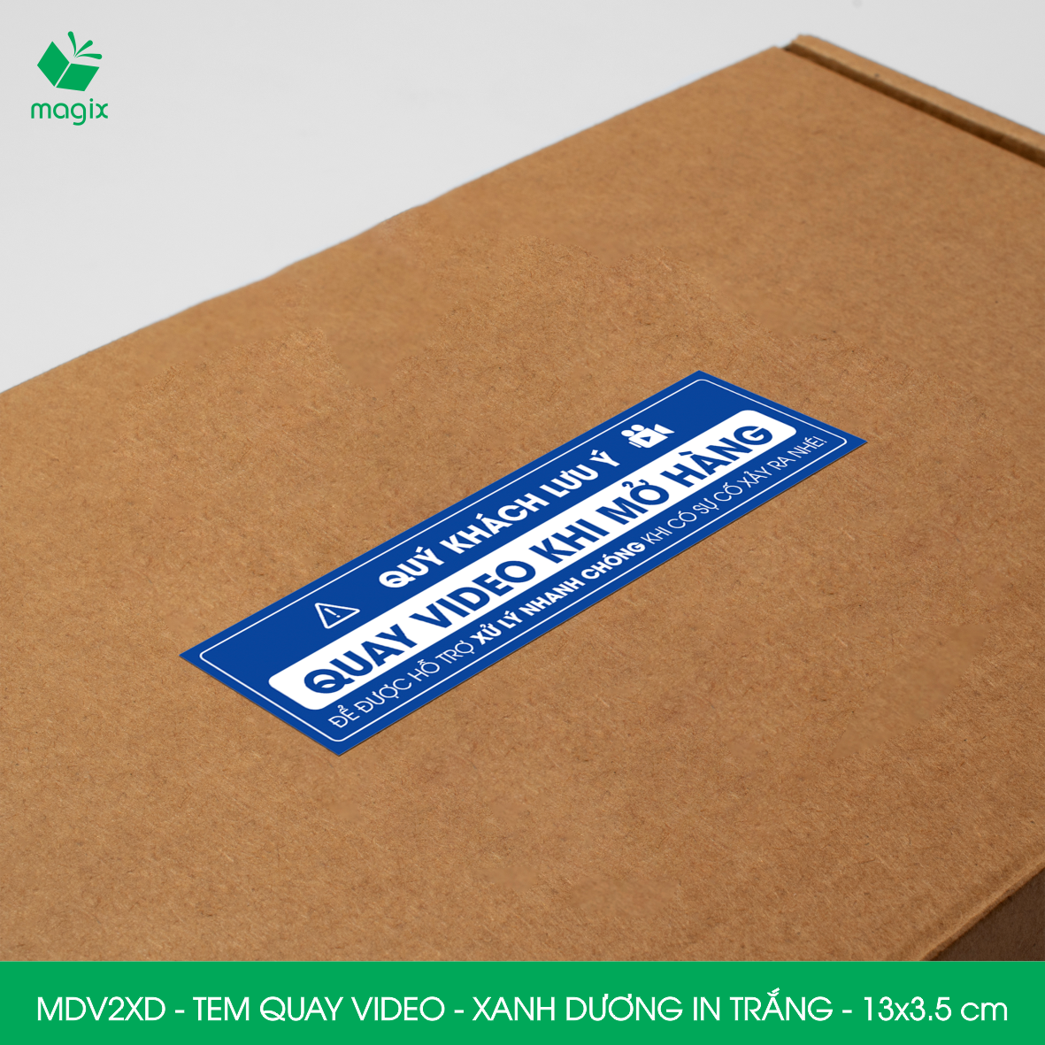 ✨50 Tem chú ý quay video trước khi mở hàng, decal dán hộp - 13x3,5 cm - Xanh dương in trắng - MDV2XD
