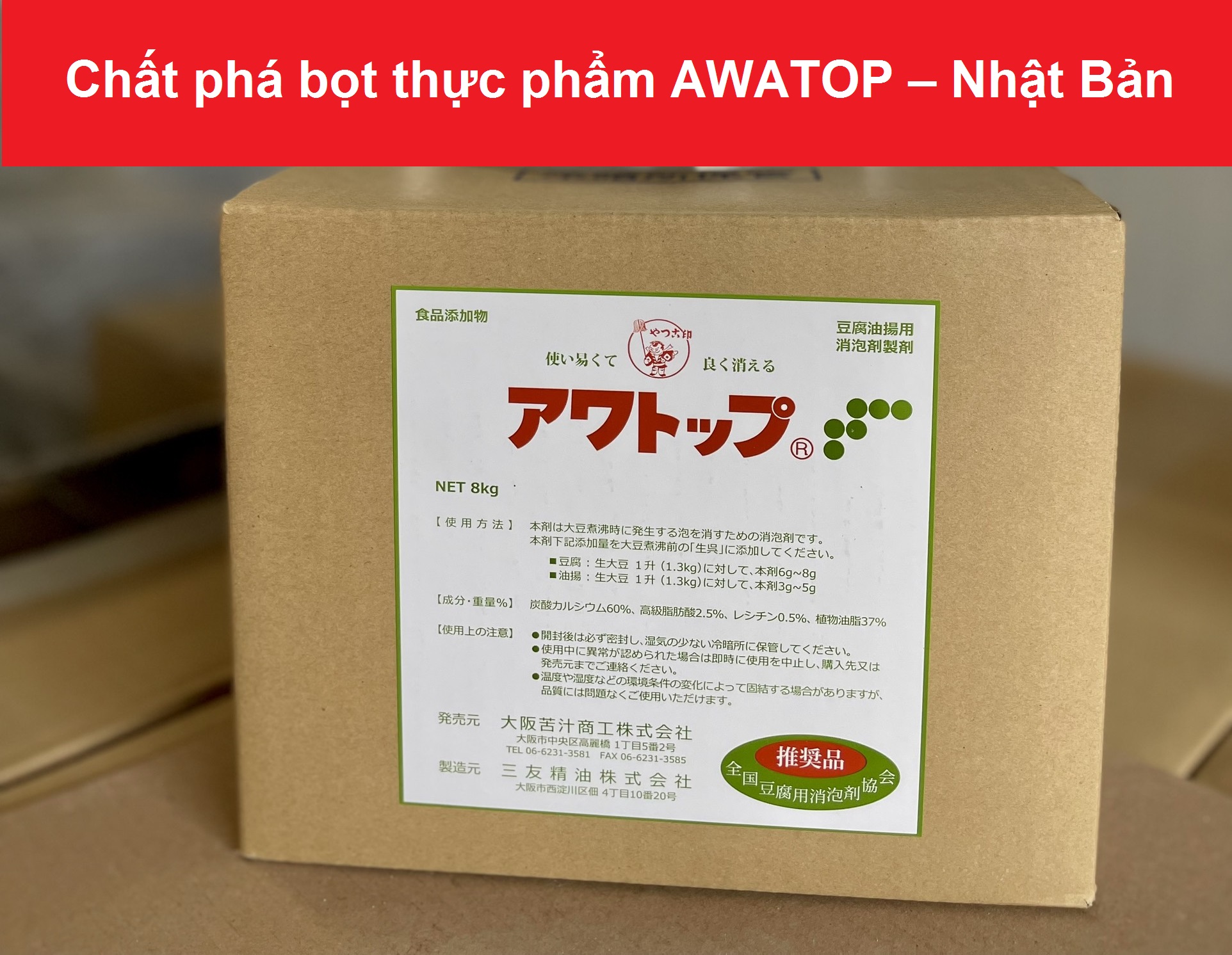 Tên thường gọi : Chất phá bọt, chất nhũ hoá, AWATOP Nhật, phụ gia đậu hũ, AWATOP Nhật Bản, chất phá bọt thực phẩm, chất chống tạo bọt thực phẩ