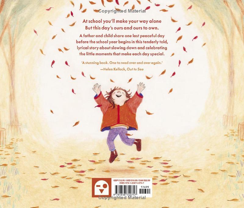In this heart-warming, poetic story, a father and child share the last few moments of quiet before the school year begins. They take the time to notice each detail as they spend their special day together – from making a special pancake breakfast to noticing each spider’s web and falling feather. A moving story for parents to share with their little ones as they take their first steps into school or nursery.