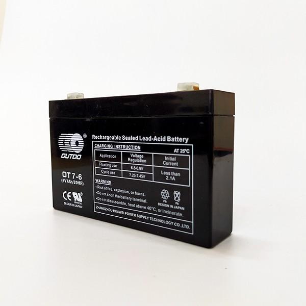 Ắc Quy Lưu Điện OUTDO OT7-6 Nhập khẩu: Trung Quốc Hãng sản xuất : Zhangzhou Huawei Power Supply Technology Co.,Ltd. Đặc tính : khô, kín khí Công suất : 6V - 7Ah Kích thước: Dài