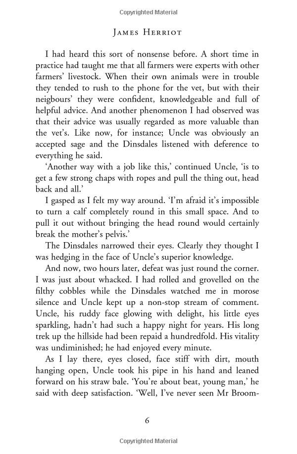 Fresh out of Glasgow Veterinary College, to the young James Herriot 1930s Yorkshire seems to offer an idyllic pocket of rural life in a rapidly changing world. But from his erratic new colleagues, brothers Siegfried and Tristan Farnon, to incomprehensible farmers, herds of semi-feral cattle, a pig called Nugent and an overweight Pekingese called Tricki Woo, James finds he is on a learning curve as steep as the hills around him. And when he meets Helen, the beautiful daughter of a local farmer, all the training and experience in the world can’t help him . . .