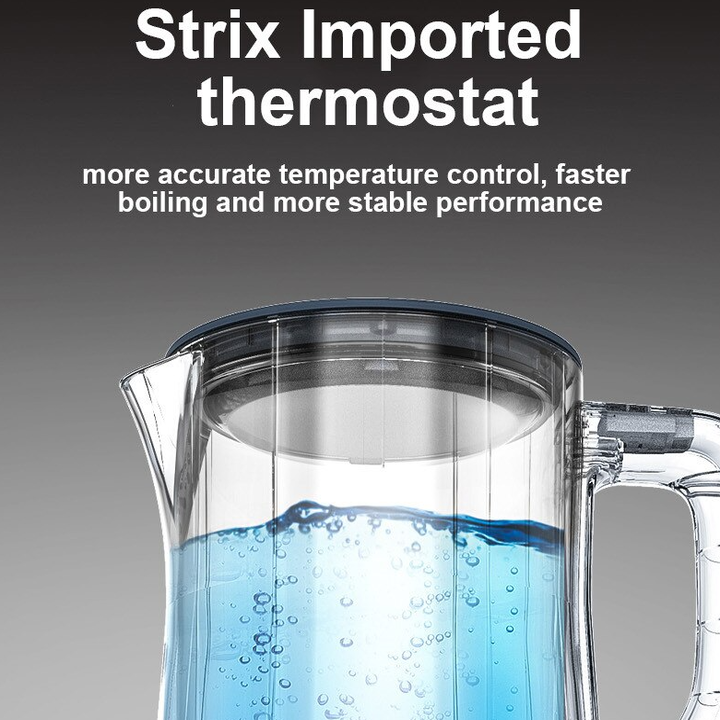 - Chất liệu ấm thép không rỉ, dễ dàng vệ sinh cùng với bộ điều khiển nhiệt độ Strix cao cấp. Cực kì an toàn với 3 chức năng: tắt tự động sau khi nước sôi, tắt tự động khi quá nhiệt độ quá cao hoặc khi nước cạn trong bình, tắt tự động khi bình được nhấc ra khỏi đế. Thông số kỹ thuật sản phẩm