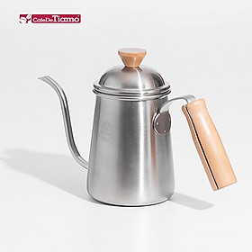 ẤM INOX 304 TIAMO TAY CẦM GỖ Ấm rót được làm từ chất liệu thép không gỉ có khả năng chống mài mòn cao. Chiếc vòi cổ ngỗng mềm mại cho dòng chảy ổn
