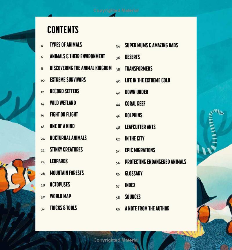 A central gatefold offers a world map which reveals the locations of all the animals included in the book.