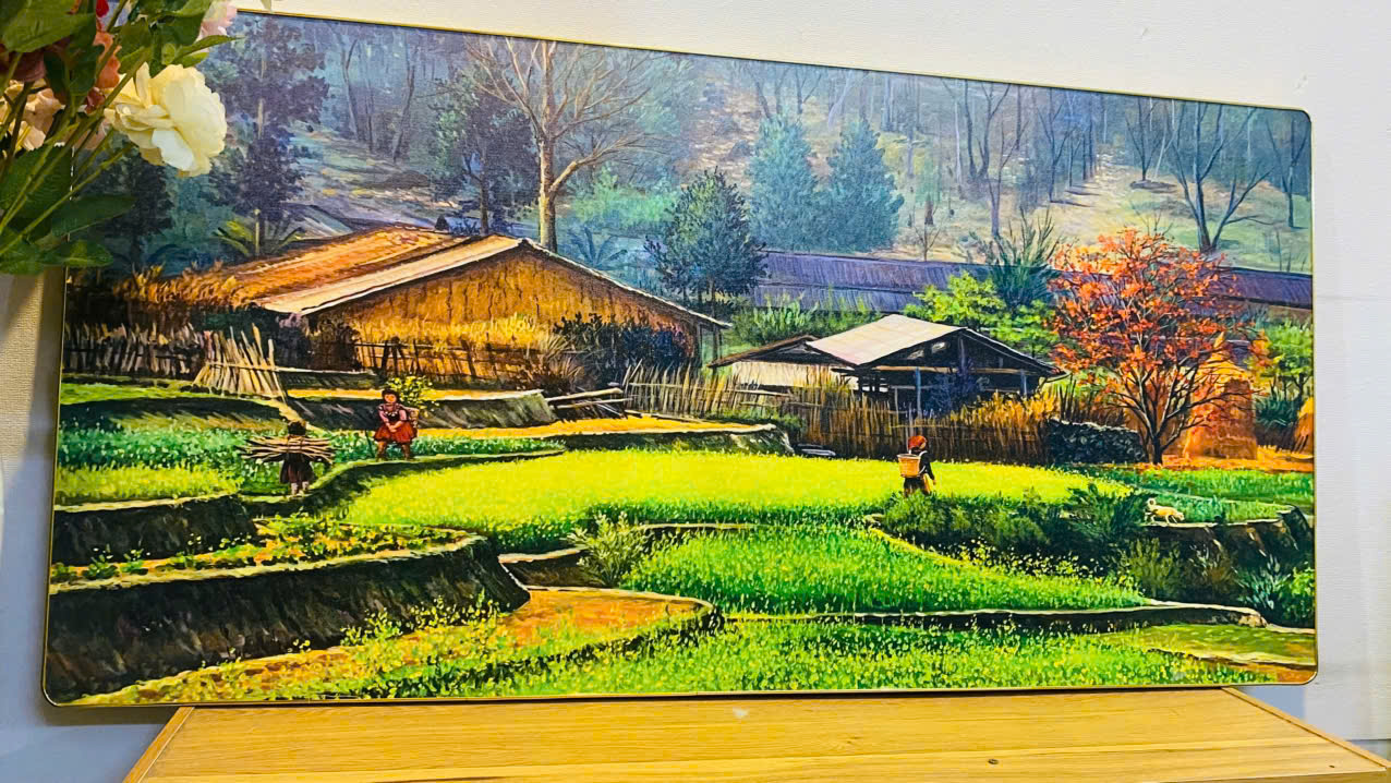 Tranh treo tường làng quê Việt Nam yên bình - Kích thước của tranh : Kích thước : 45x70cm - 50x80cm - 60x100cm - 70x120cm - Chất liệu : Tráng gương - Khách hàng muốn