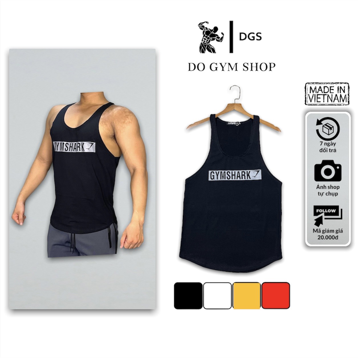 Thông tin về sản phẩm áo tank top nam tập gym DO GYM SHOP chất thun thoáng mát khi chơi thể thao, mặc nhà: - Chất liệu:thun cotton - Màu sắc: đen, trắng, xám, vàng