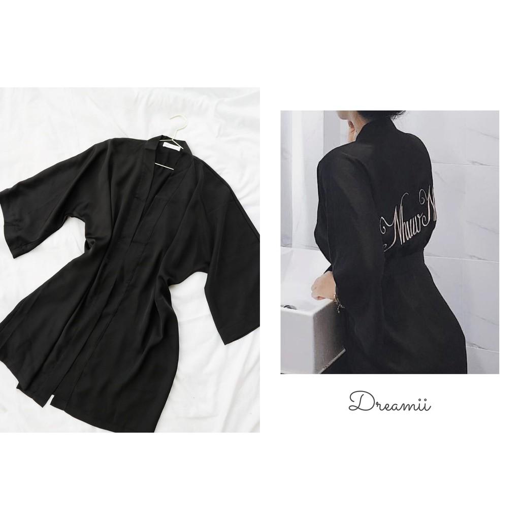 Mua tại TiktokBộ choàng đơn giản các màu Bên cạnh việc sử dụng chất liệu lụa satin, còn điểm xuyết chi tiết thêu ren trong hầu hết các mẫu thiết kế, để giúp người mặc khoe trọn vẹn đường nét quyến rũ tinh tế mà không quá phô trương. Thiết kế: Với thiết kế ngọt ngào, một bộ choàng không thể thiếu trong tủ đồ của các nàng với chiếc đai thắt ngang tạo điểm nhấn của bộ đồ ngủ cùng với chữ được thêu đặc biệt ở sau áo. Nếu bạn muốn thêu theo yêu cầu hãy nhắn tin cho shop để được tư vấn nha! Màu sắc: Màu đen/ Màu trắng Size: Free size Kích thước áo choàng: 81Cm Có nhận đặt theo size riêng Có nhận đặt thêu tên