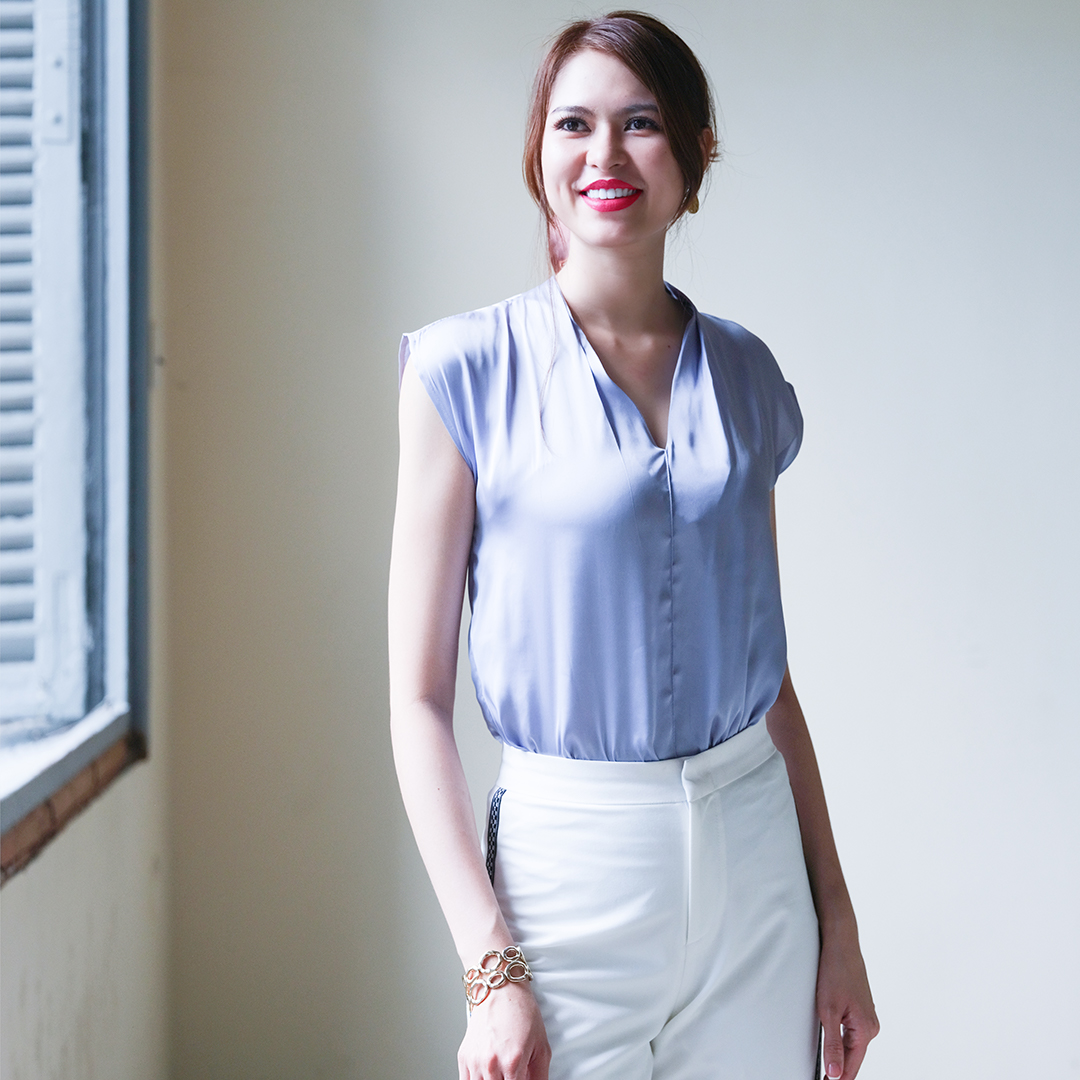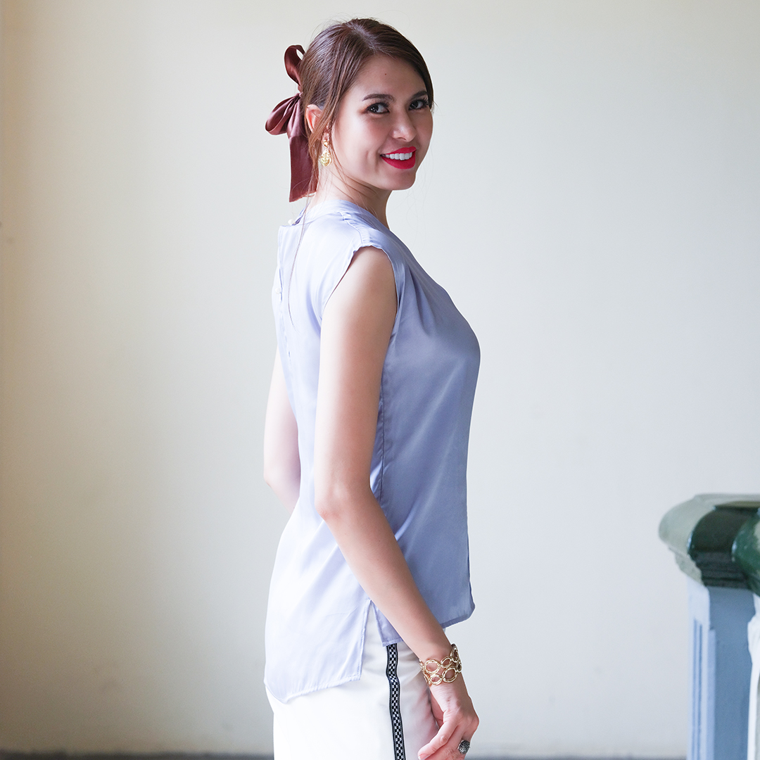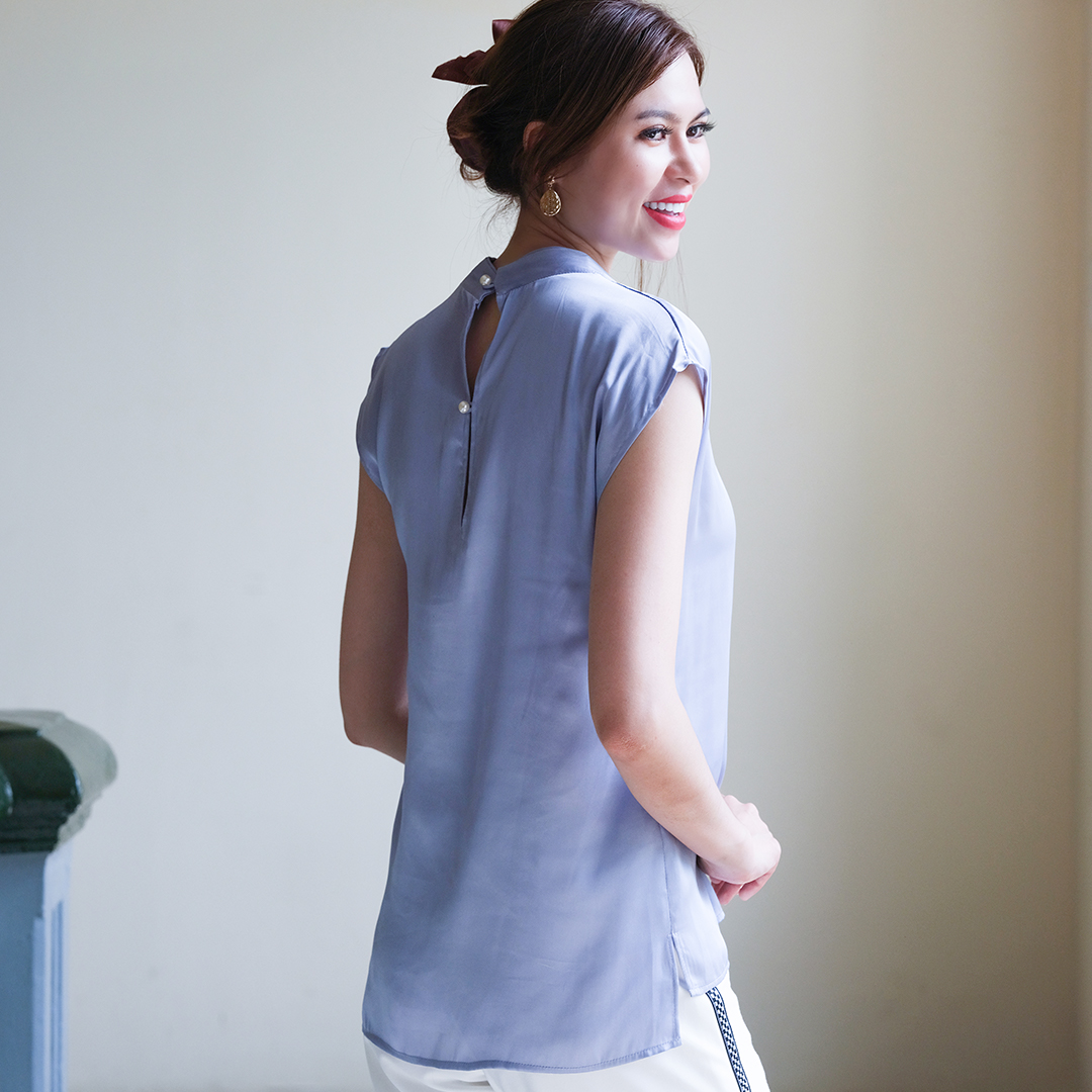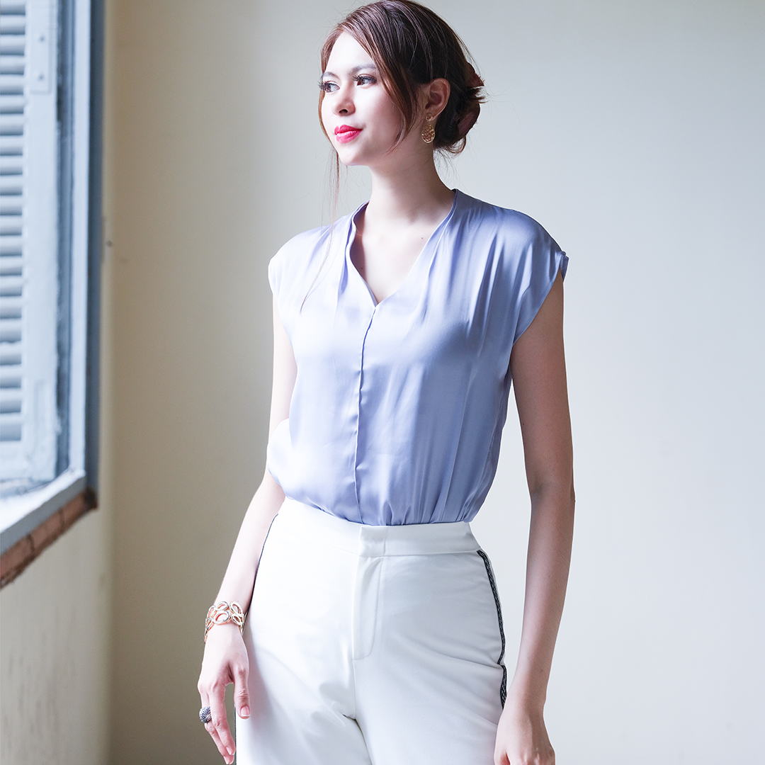Không chỉ đơn thuần là cổ V xếp ly, thiết kế áo của Hity tinh tế hơn với chi tiết nhấn ly giữa lạ mắt để tạo nét khác biệt cho phong cách công sở. Thiết kế áo vừa duyên dáng nữ tính, vừa quyến rũ nhất định mà vẫn đảm bảo nét thanh lịch chỉnh chu. Một thiết kế vừa chuẩn mực khi đi làm, lại đủ ngọt ngào nhẹ nhàng khi xuống phố.