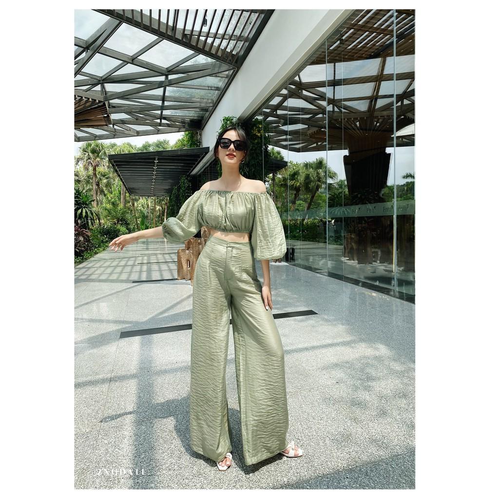 [ Shopee haul ]Set đồ nữ áo croptop sơ mi tay bồng + quần dáng váy Ulzzang HABII SE10