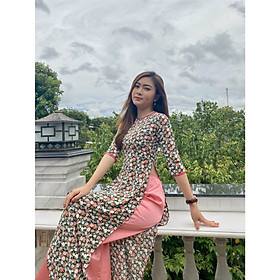 Mua tại TiktokÁo dài nữ đen hồng họa tiết cúc họa mi
