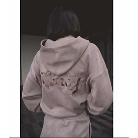 Áo Hoodie Chất da lộn cao cấp Màu Hồng khói - Kích cỡ: Oversize, chiều dài 74cm, rộng thân 120cm - Chất liệu áo hoodie da lộn cao cấp được sản xuất từ vải da