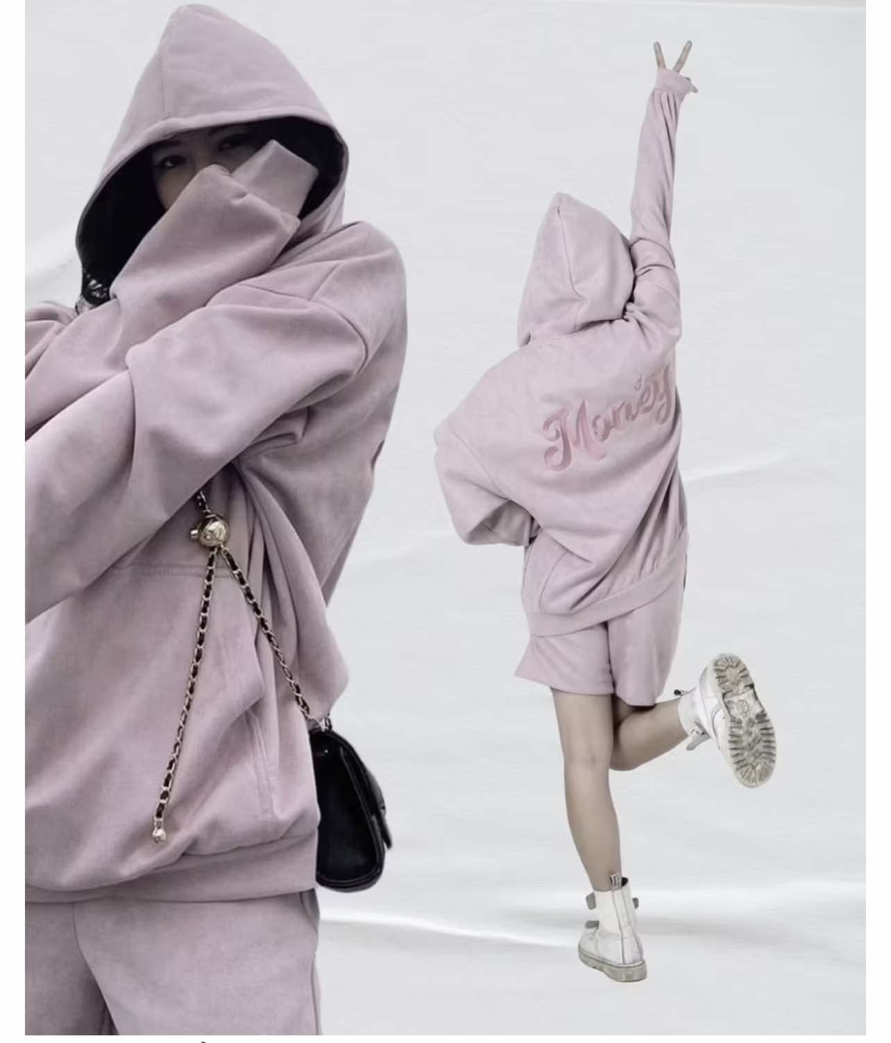 - Chất liệu áo hoodie da lộn cao cấp được sản xuất từ vải da lộn có độ co giãn 4 chiều, an toàn và không gây ngứa khi mặc.