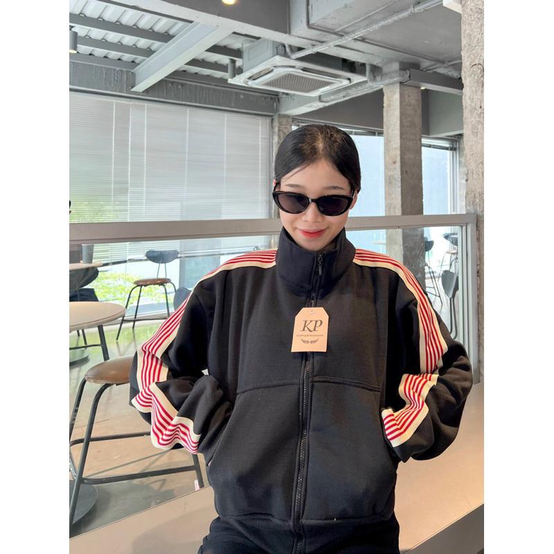Áo khoác nữ nỉ chống nắng Croptop 3 Sọc Dáng Rộng Mũ To 3 sọc là sự lựa chọn hoàn hảo cho các cô gái yêu thích phong cách thời trang năng động và cá