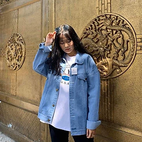 Áo khoác jean nữ chống nắng với logo vuông siêu hot là lựa chọn không thể thiếu trong tủ đồ của các cô gái yêu thích phong cách thời trang cá tính và hiện đại.