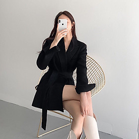 ✨Áo khoác dạ len cổ vest thắt đai thời trang Hàn Quốc