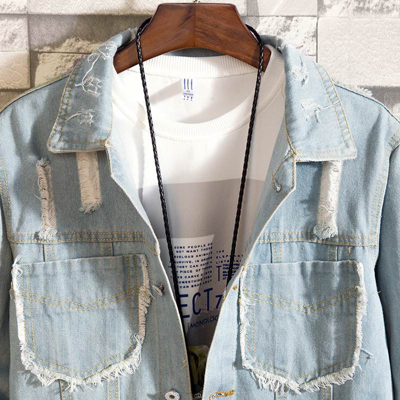 Áo khoác Jean nam tua rua trắng . Thiết kế cực phong cách, tinh nghịch Kết hợp chiếc áo khoác này với đôi giày thể thao nam và mắt kính thời trang Thiết kế khéo léo,