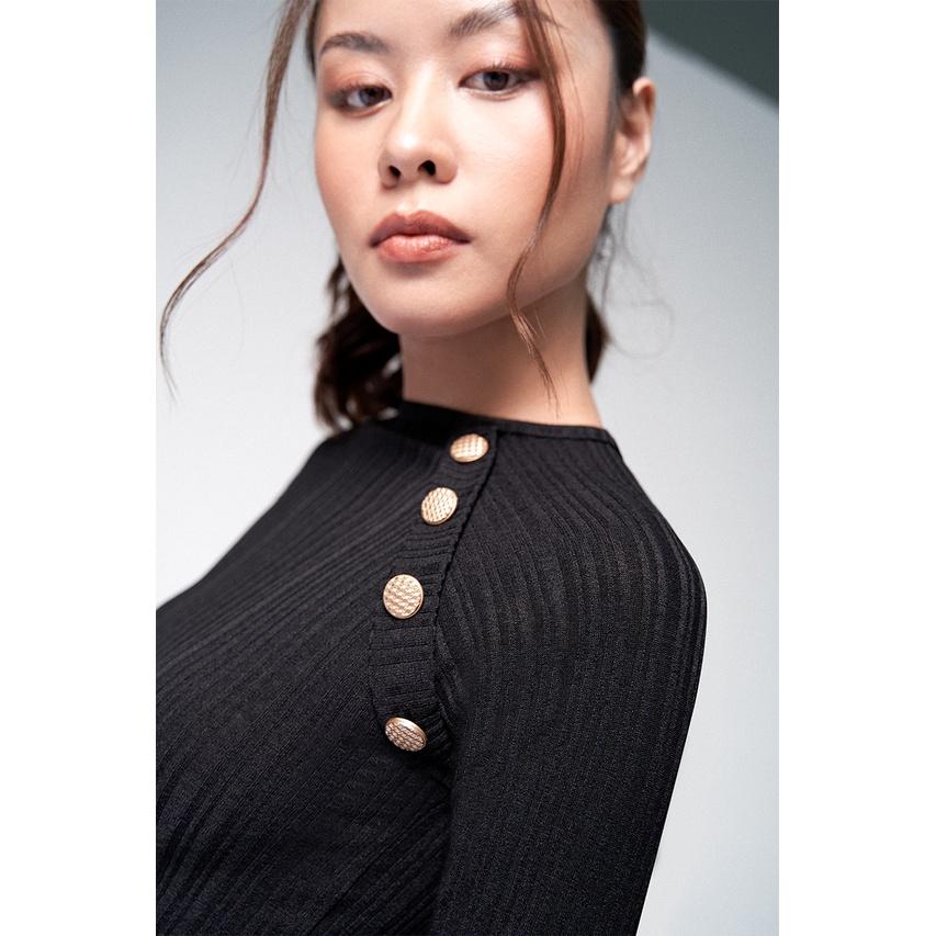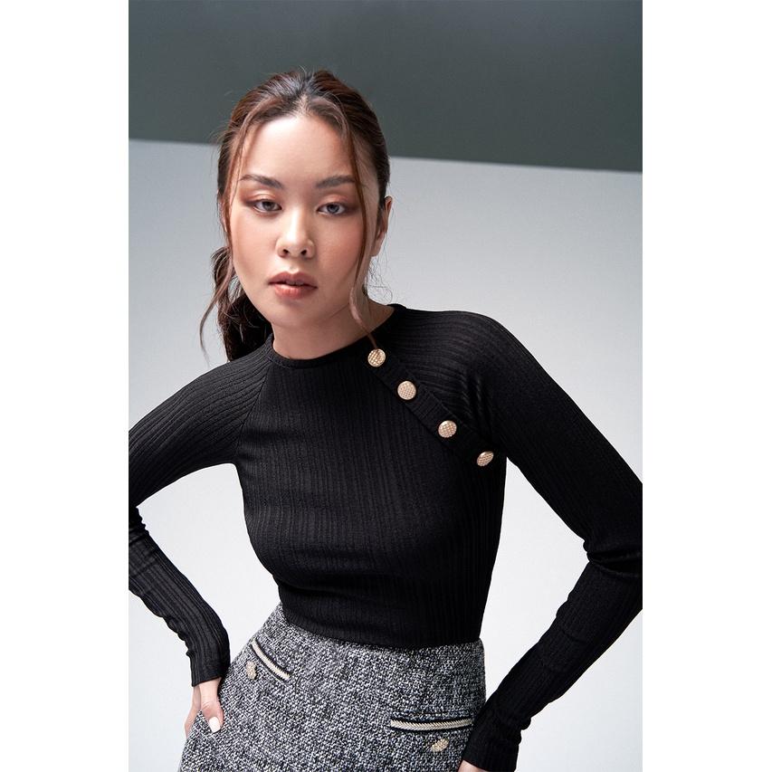 Áo len nữ dài tay dáng ôm điểm nhấn vai đính cúc mạ vàng nổi bật - AD4B241