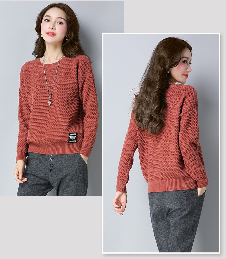 Áo len nữ dài tay cổ tròn đính nơ bướm