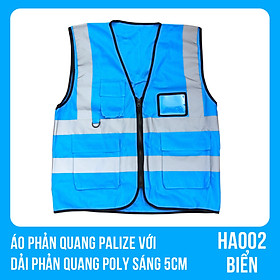 ✨Áo phản quang Palize với dải Phản quang Poly sáng 5cm màu BIỂN - Mã HA002