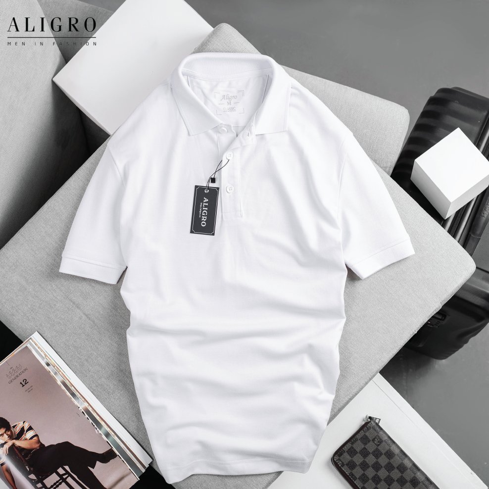 ✨Áo phông cộc tay coupro nam Aligro ALGPLO25 cổ bẻ màu trắng