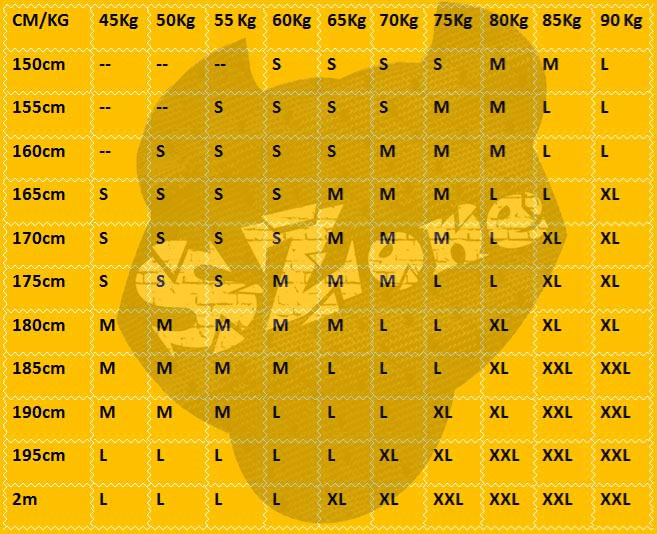 - Size XL : 1m75 - 1m85 ; 80-90 kg