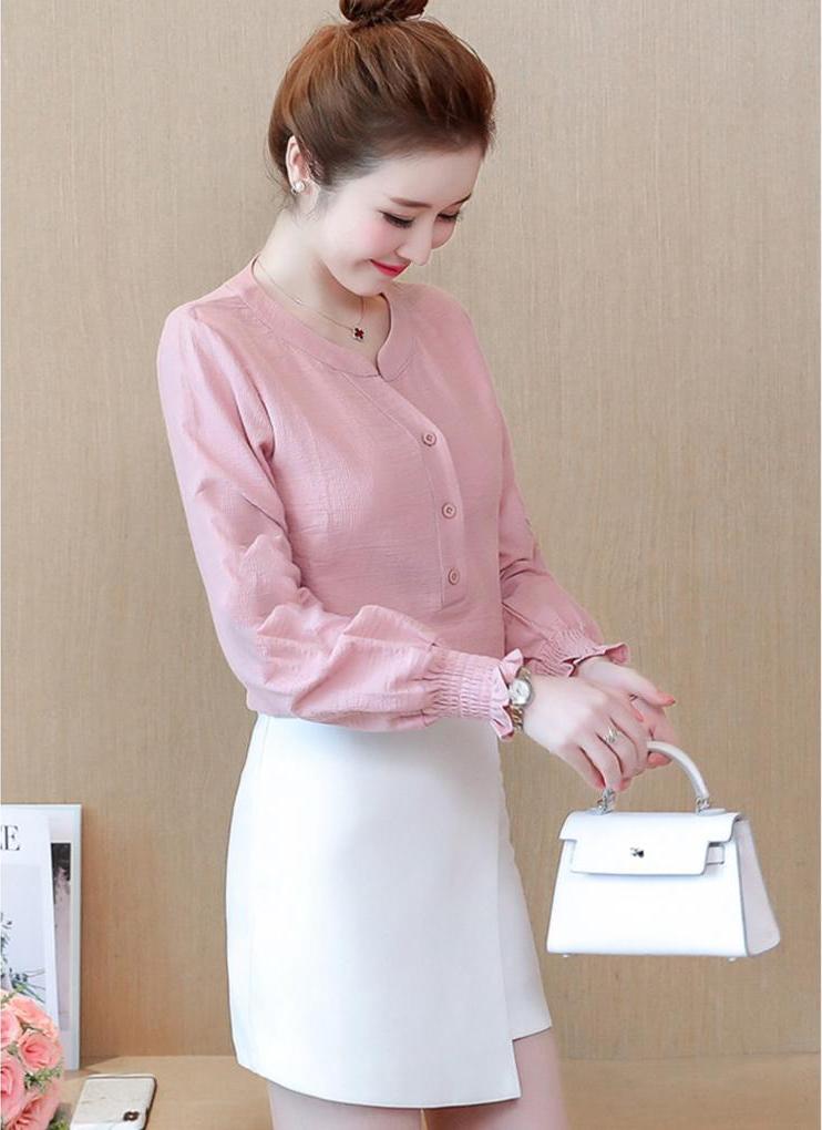 Kiểu dáng: áo sơ mi công sở cổ tim thanh lịch, phối nút duyên dáng, tay dài cài nút phong cách phù hợp công sở, công tác, đi dạy, đi học, đi tiệc Chất liệu:
