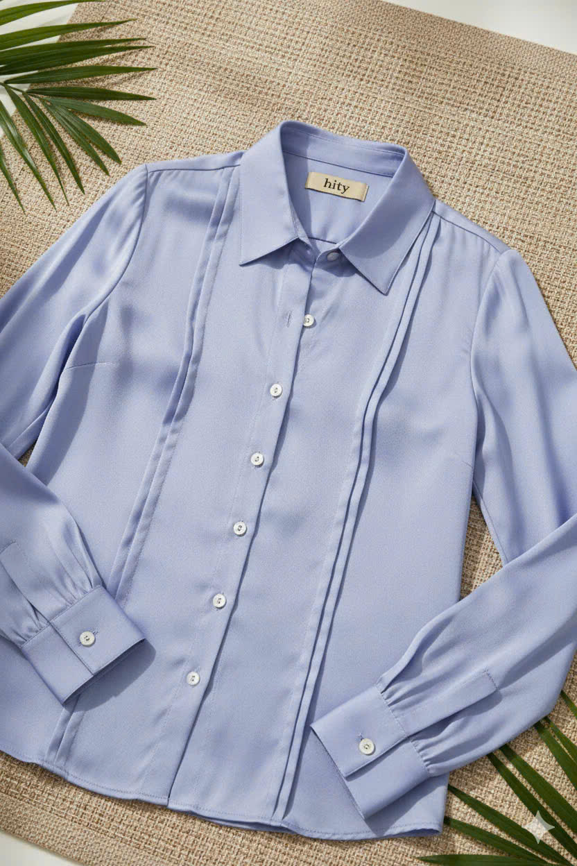 Nghệ nhân cắt may: Local Made Trong nhịp sống hiện đại, vẻ đẹp đích thực không nằm ở sự cầu kỳ, mà ở sự tự tại và thanh lịch không cố gắng (effortless elegance). Chiếc Áo sơ mi sinh ra để tôn vinh tinh thần ấy. Hãy tưởng tượng bạn đang sải bước trên hiên resort, dưới tán lá cọ xanh mướt, ánh hoàng hôn vàng óng ươm lên làn da và chất vải nhẹ nhàng màu xanh da trời thanh cao. Chiếc áo Thanh Lâm nhẹ nhàng bay lượn theo từng cơn gió nhiệt đới, mang đến cảm giác thư thái tuyệt đối. Chiếc áo sơ mi này là sự kết hợp hoàn hảo giữa phom dáng công sở truyền thống và chất liệu lụa cao cấp: