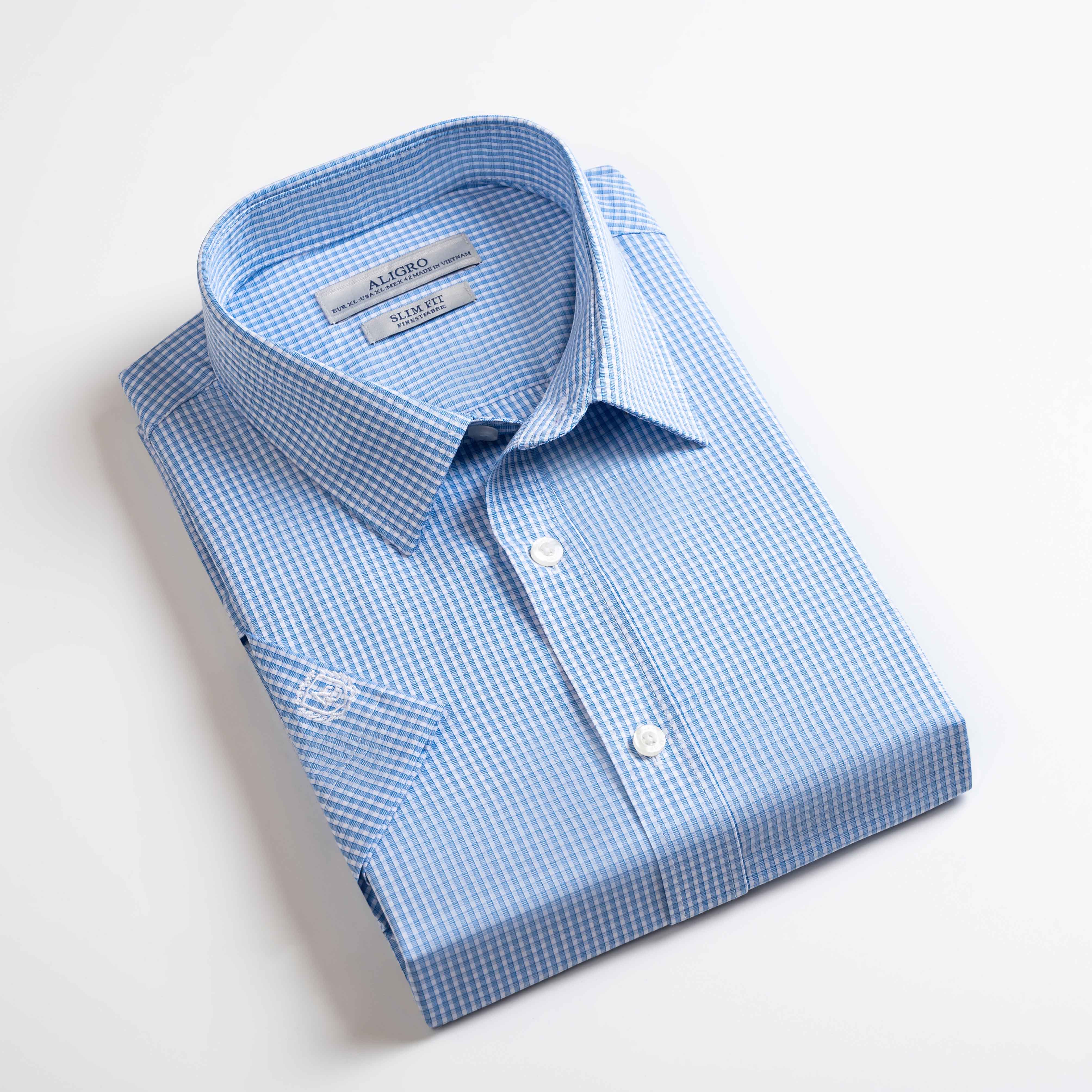 ÁO SƠ MI NAM DAI TAY KẺ CARO XANH TÍM ALIGRO ALGS186