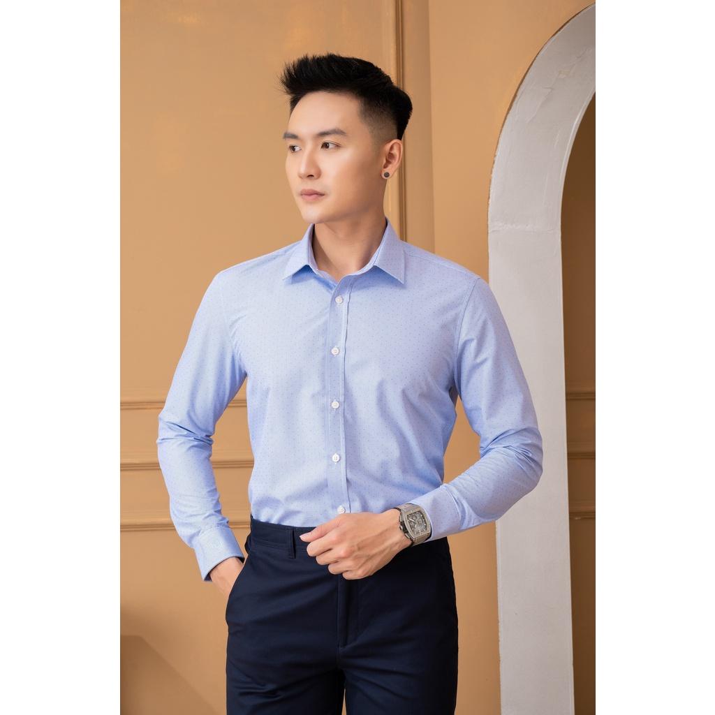 Áo sơ mi nam trung niên, Áo sơ mi nam công sở Anton, Áo sơ mi trắng dài tay trắng họa tiết chấm bi Y302 Vải cotton thoáng mát, thấm hút tốt, mềm mịn không