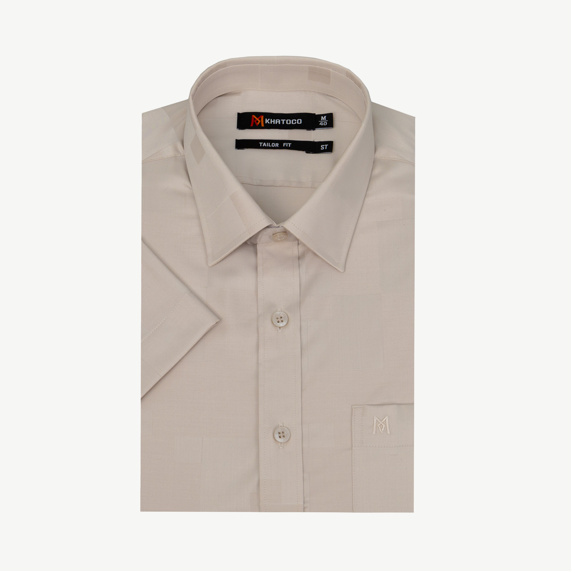 Áo sơ mi nam tay ngắn lai ngang – Khatoco - Mã hàng: A1MN498T2 - Chất liệu: - 77% Polyester (Microfiber) - 19% Viscose (Modal) - 4% Spandex → Vải cao cấp, mềm mại, thấm