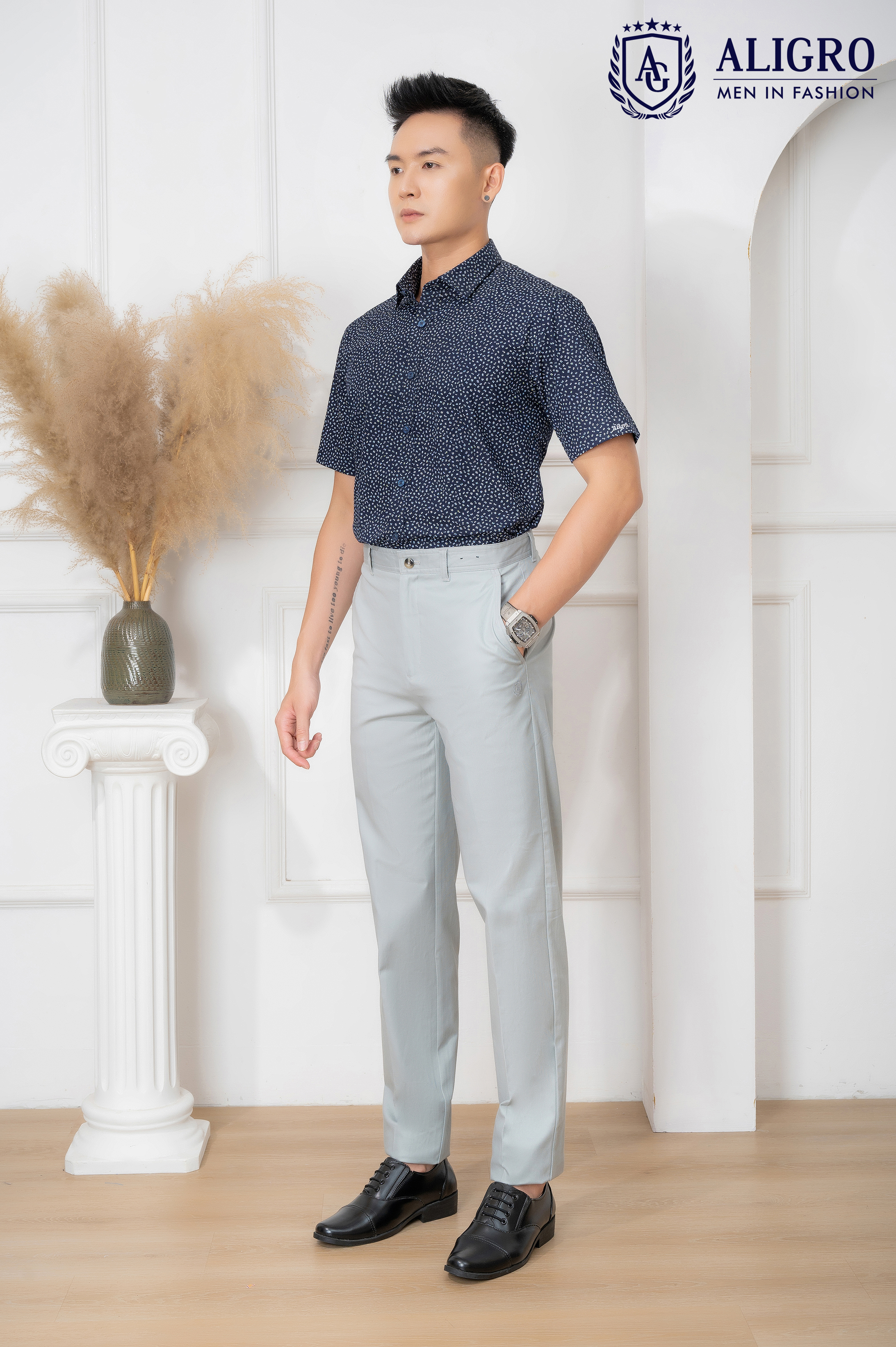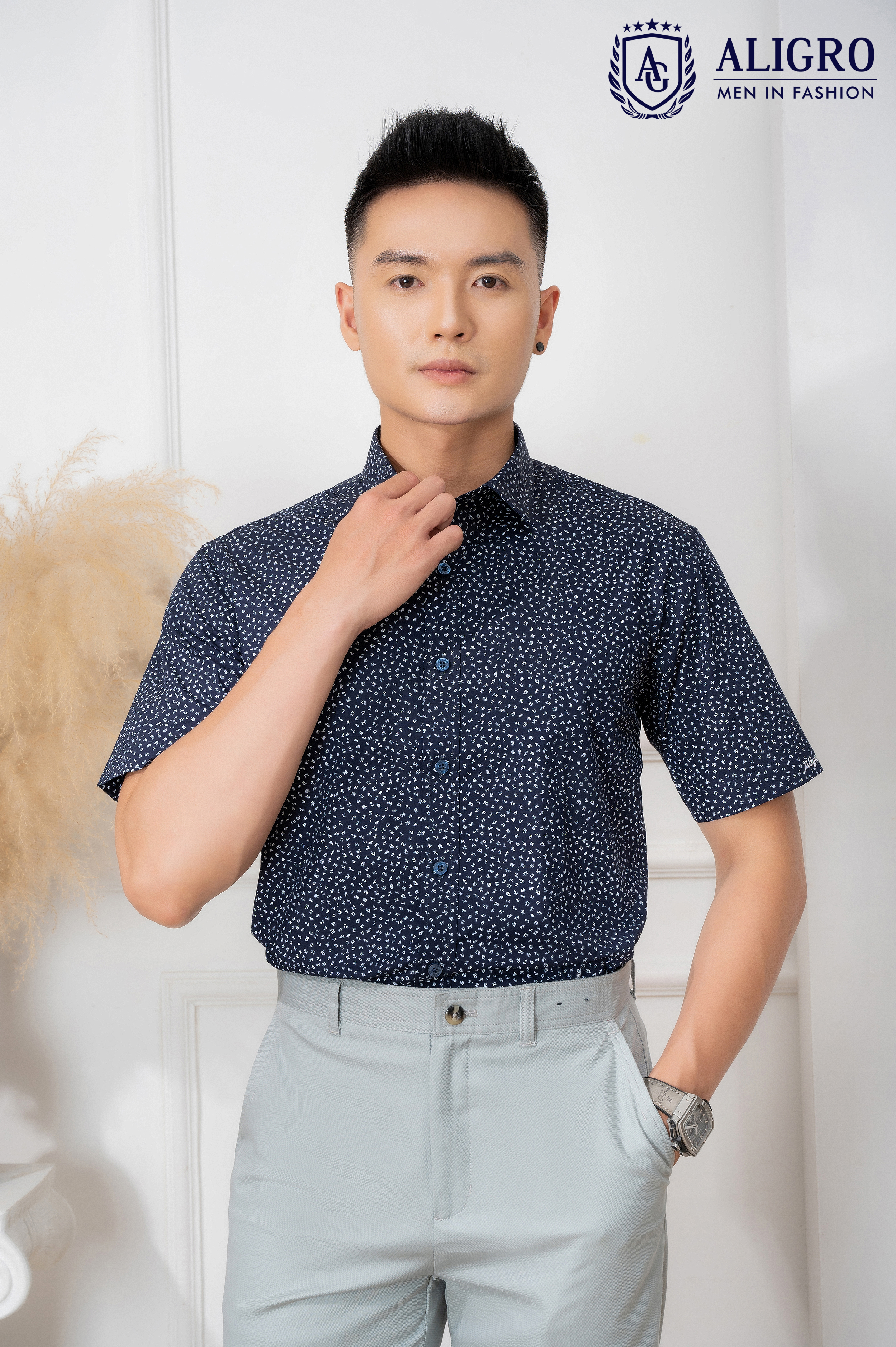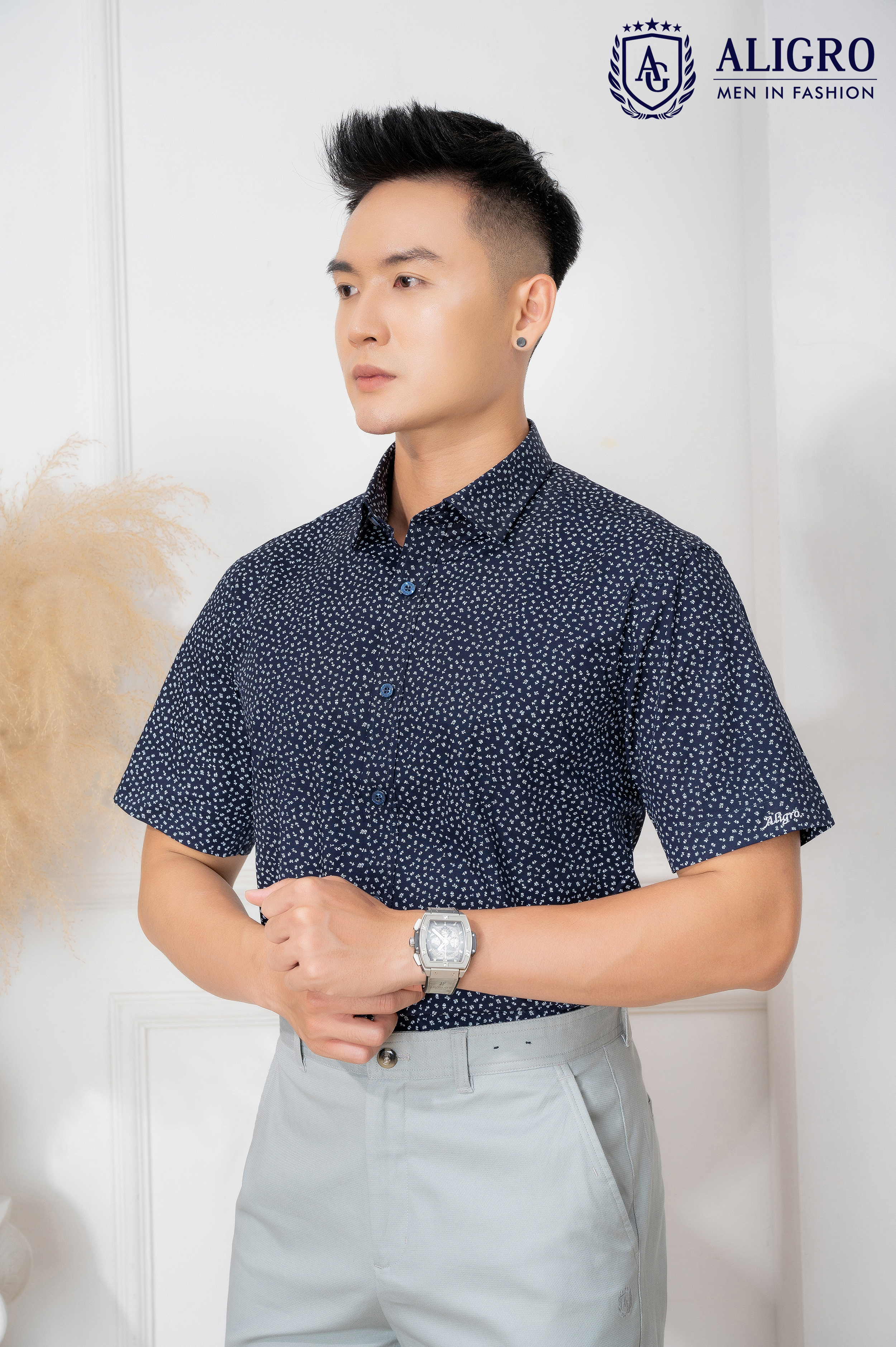ÁO SƠ MI NAM CỘC TAY XANH HỌA TIẾT HOA NHỎ ALIGRO ALGSC88