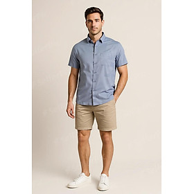 Áo sơ mi nam tay ngắn lai ngang – Khatoco - Mã hàng: A1MN498T2 - Chất liệu: - 77% Polyester (Microfiber) - 19% Viscose (Modal) - 4% Spandex → Vải cao cấp, mềm mại, thấm