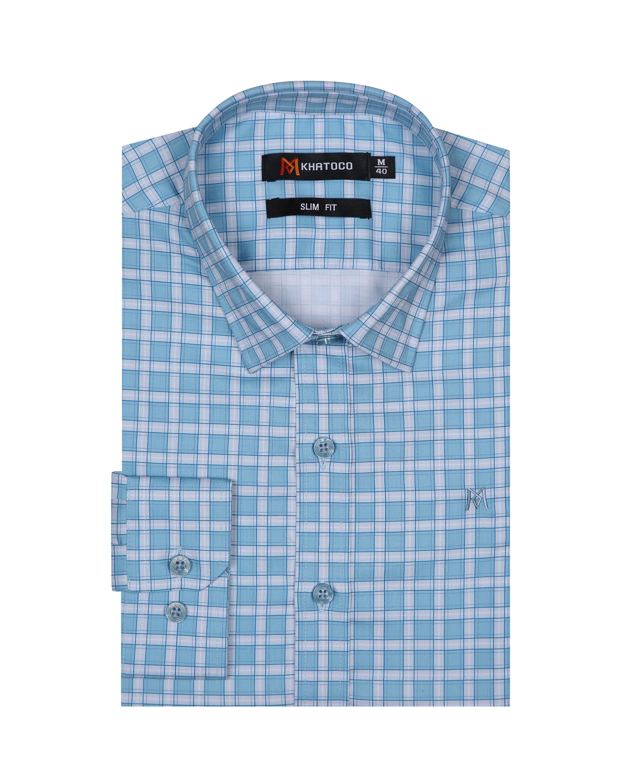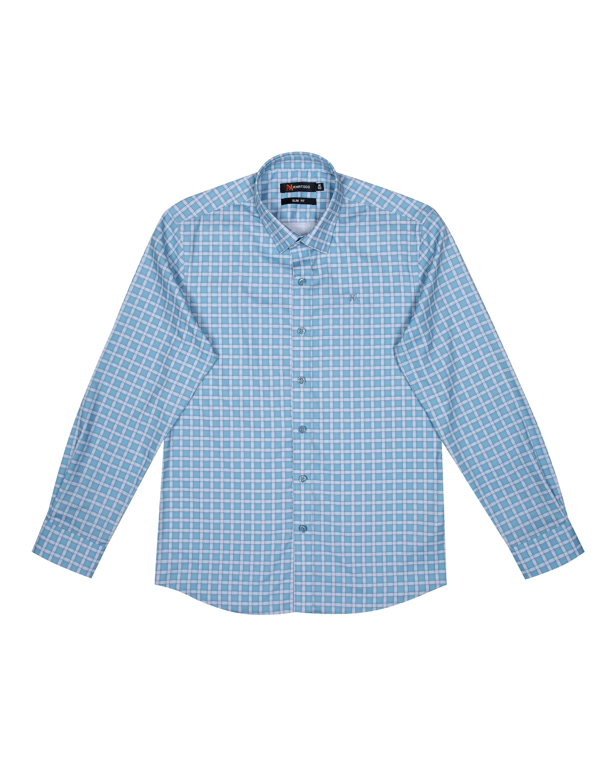 Áo sơ mi nam trung niên, Áo sơ mi nam công sở Anton, Áo sơ mi nam dài tay họa tiết caro xanh Vải cotton thoáng mát, thấm hút tốt, mềm mịn không xù Qúy