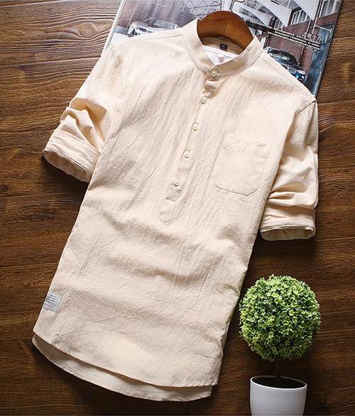 Áo Sơ mi nam dài tay cổ bẻ có túi ngực vải đũi kiểu dáng Basic Chất (0964975999)