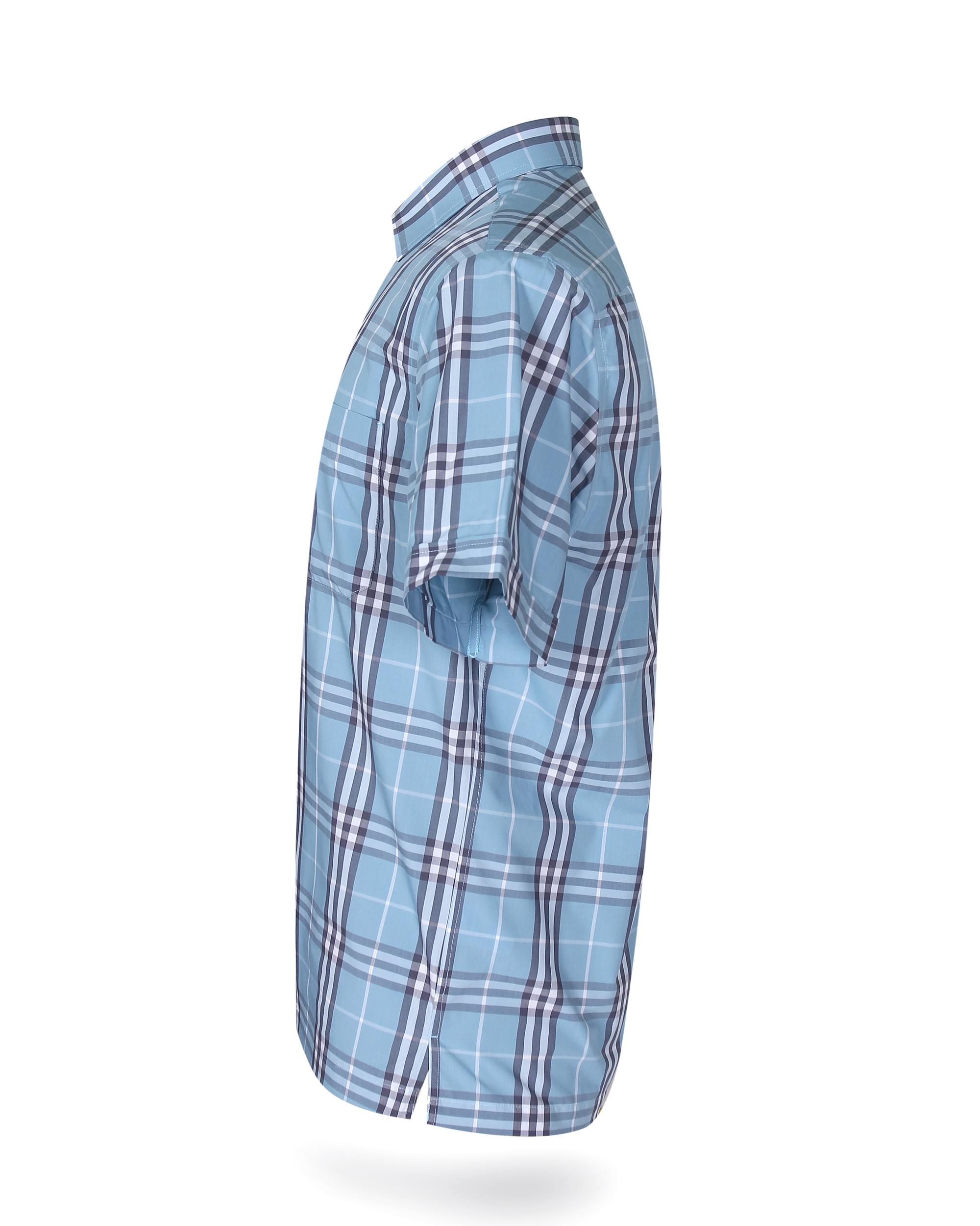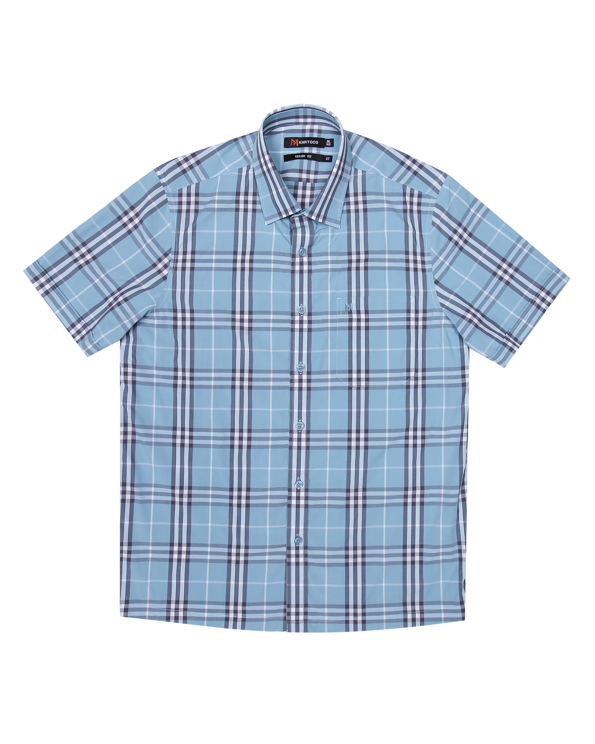 Áo sơ mi nam tay ngắn lai ngang – Khatoco - Mã hàng: A1MN538T2 - Chất liệu: 75% Polyester + 22% Viscose (Bamboo) + 3% Spandex → Vải mềm mại, thoáng mát, co giãn nhẹ,