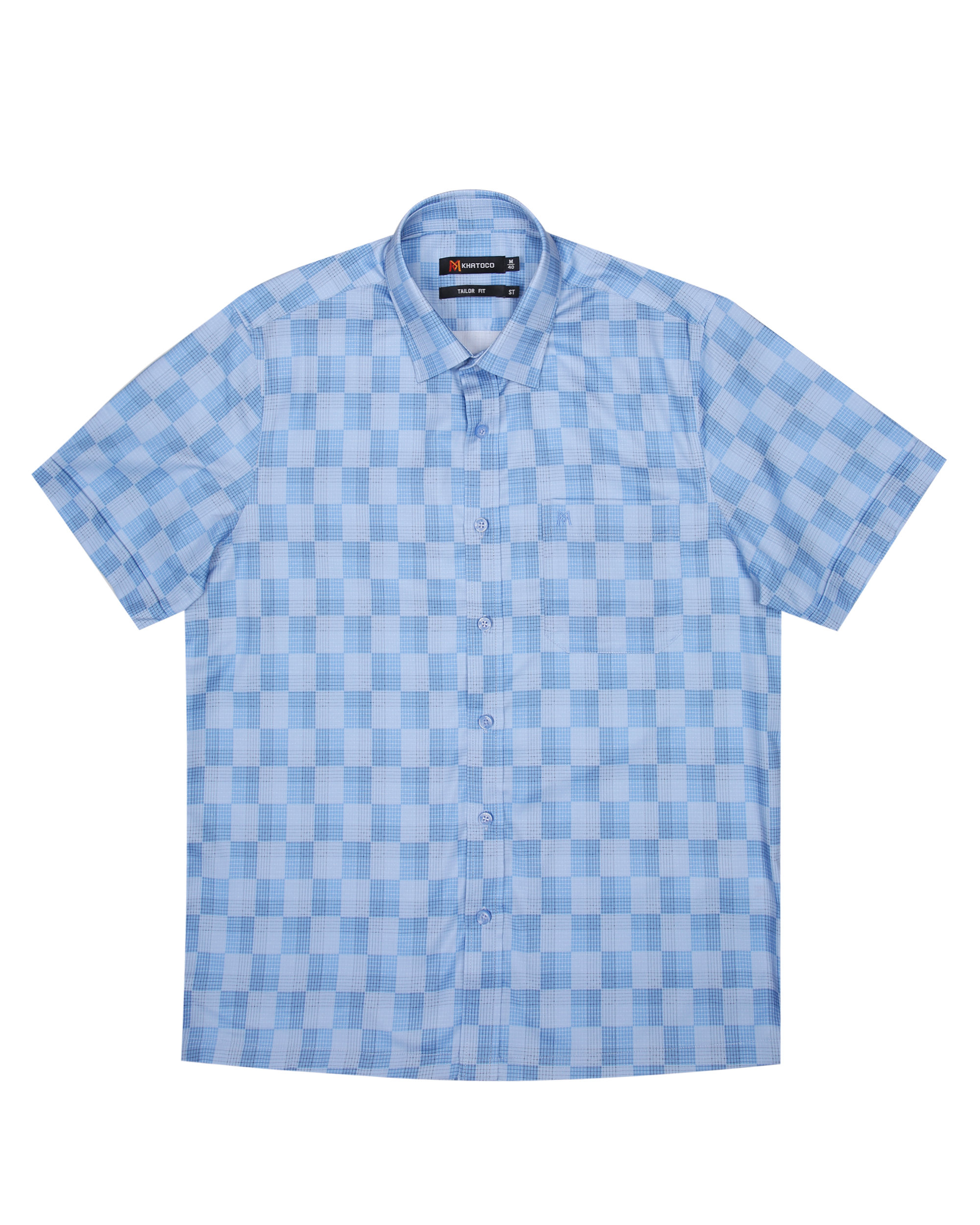 Áo sơ mi nam tay ngắn lai ngang – Khatoco - Mã hàng: A1MN498T2 - Chất liệu: - 77% Polyester (Microfiber) - 19% Viscose (Modal) - 4% Spandex → Vải cao cấp, mềm mại, thấm