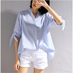 Áo sơ mi sọc phối nơ sau xinh xắn Mô tả Size S: sản phẩm vòng eo rộng 64cm - 66cm, vòng ngực rộng 84cm-86cm, vòng mông rộng 86cm-88cm Size M: sản phẩm vòng eo
