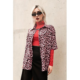 CHẤT LIỆU LỤA GIẤY, MỀM MƯỢT, KHÔNG NHĂN ÁO MÀU HỒNG, HOẠ TIẾT MÀU ĐEN ÁO SOMI NẸP GIẤU NÚT FORM RỘNG FREESIZE ĐIỂM NHẤN 1 BÊN TAY PHẢI ÁO GẮN TAG LOGO LAAS