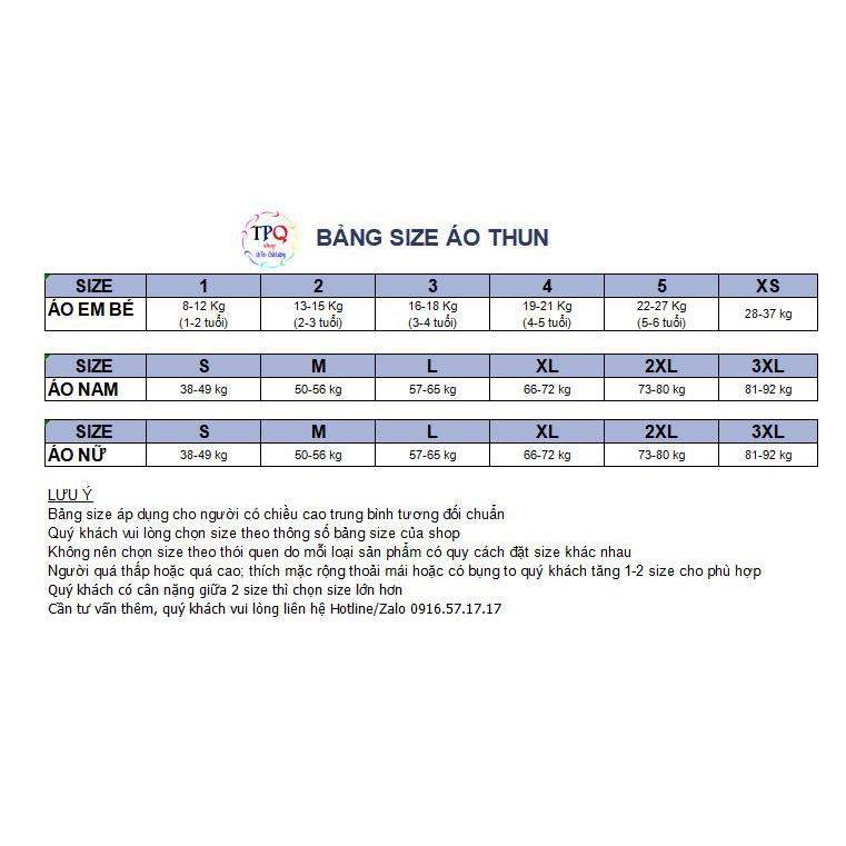 Size áo : đủ size (từ 9kg-120kg).