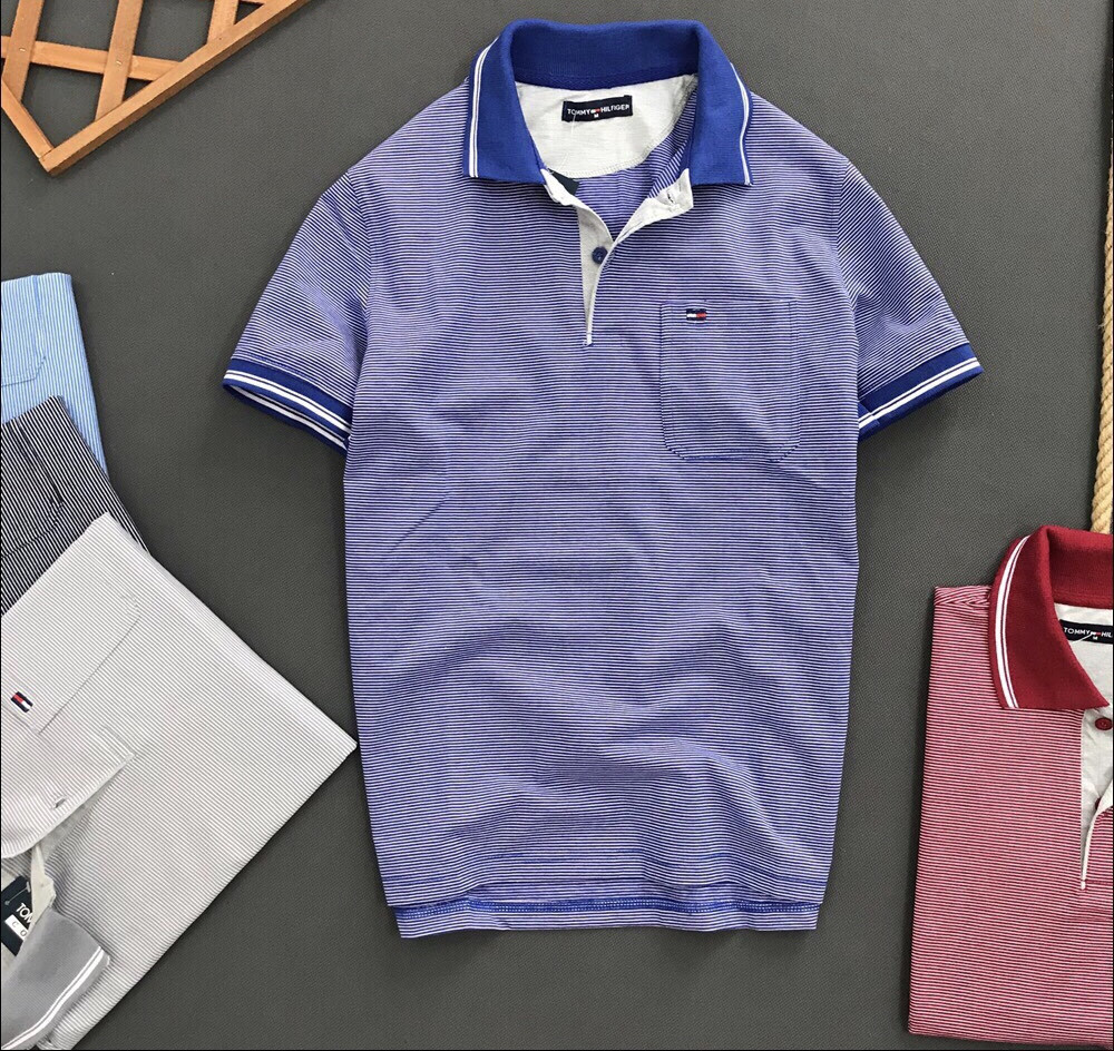 Áo thun nam trung niên sọc ngang có túi có cổ mã TL