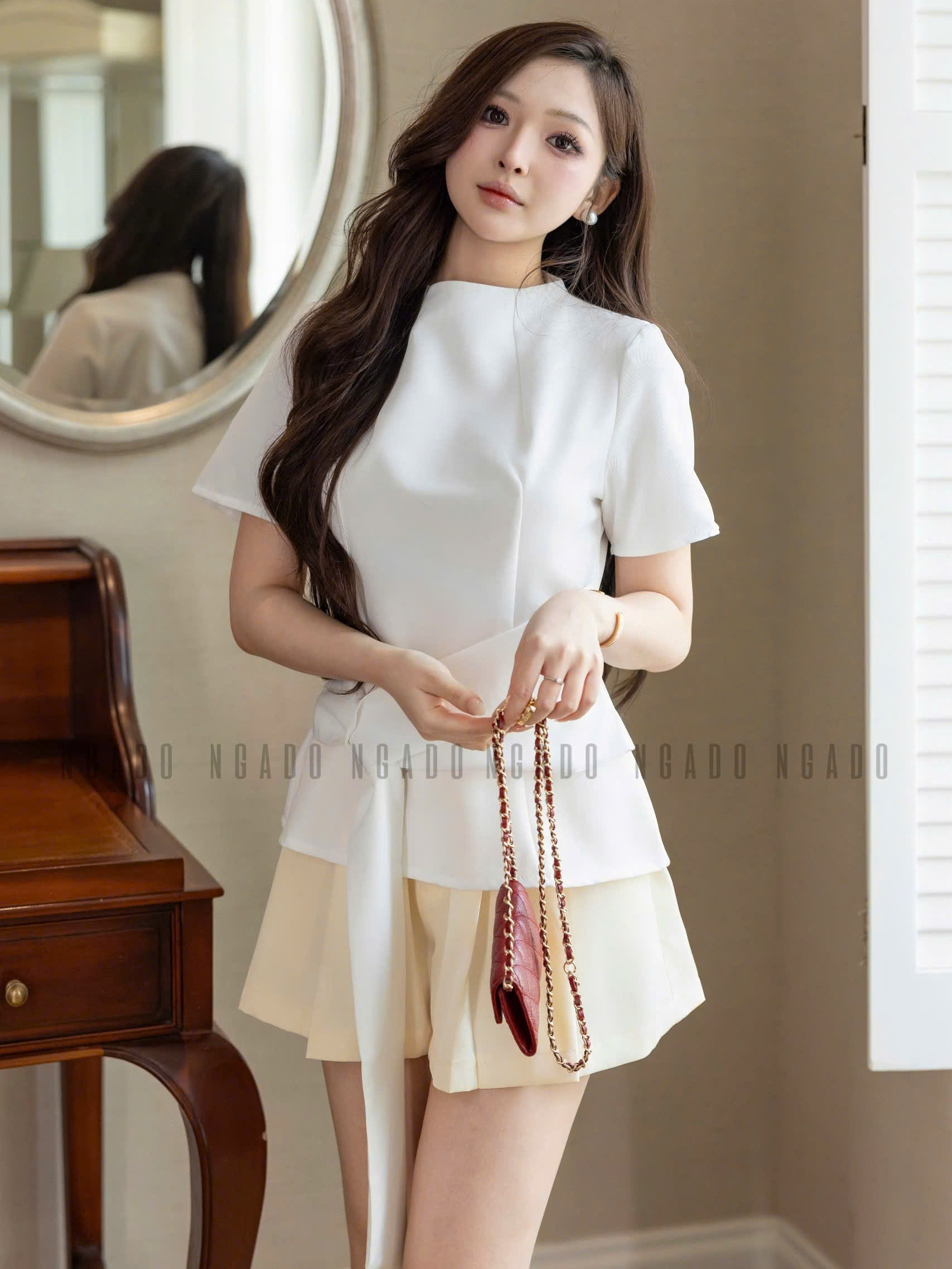 ✨Áo trắng cột eo NGADO , Áo nữ kiểu , Áo công sở , Áo đi học , Áo thiết kế