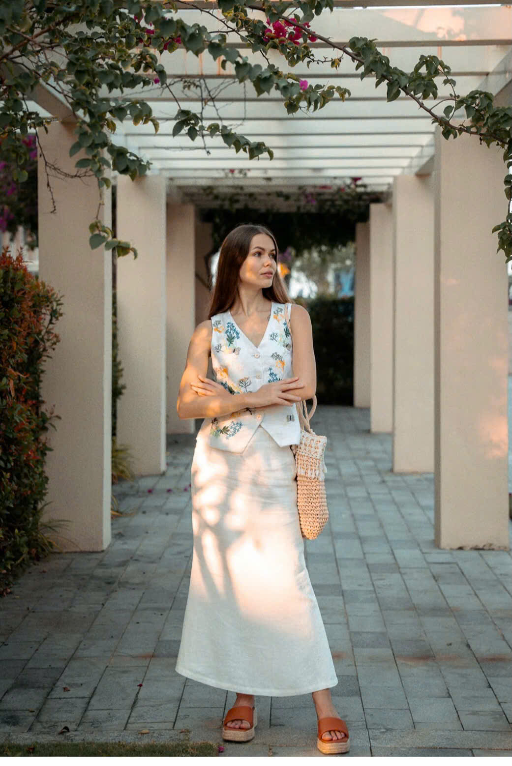 Chào đón "ngôi sao" mới gia nhập Bộ sưu tập thêu tay "Mơ" danh tiếng của Hity – Áo Vest Linen Thêu Tay Mơ, một thiết kế mang trọn vẹn hơi thở phóng khoáng và vẻ đẹp rực rỡ của miền nhiệt đới.